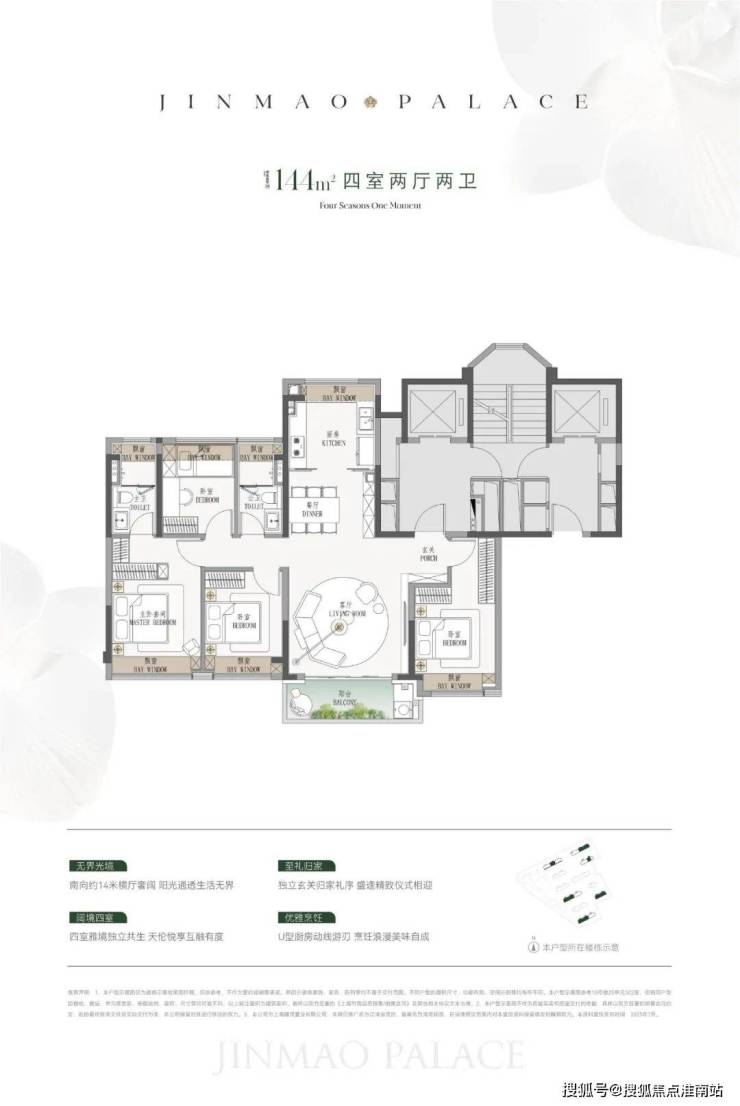 144㎡户型,U型明厨,增强家庭互动;7.2米宽厅 , 宽敞明亮,容纳全家爱好。