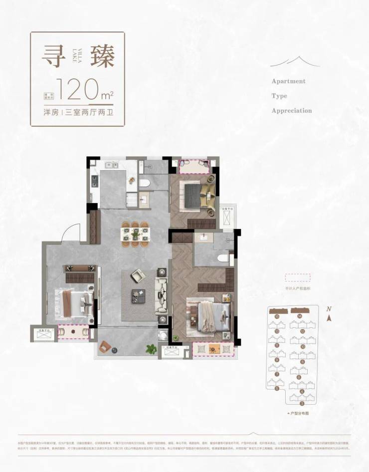 【楼栋分布】(14#15#)洋房建面:120平,三房两厅两卫