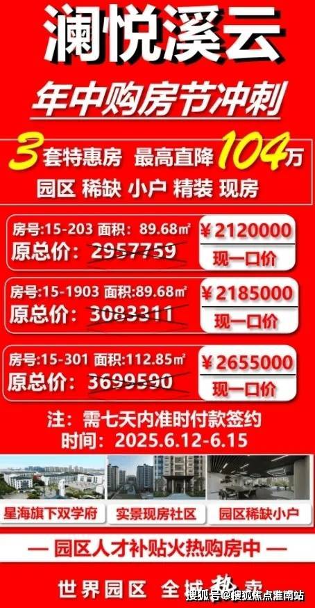 苏州园区澜悦溪云官方售楼处电话/地址:400-877-8334(官方预约看房热线)✦澜悦溪云售楼处官方营销中心热线400-8778_334【开发商官网已认证√√】最新动态配套卖点:苏州澜悦溪云位于工业园区高贸新城民胜路与兴浦路交汇处,在售面积89-158㎡,均价24000-33499元/㎡,楼层总高10-23层。交通配套含公交兴浦路北站及规划地铁9号线,区位买点包括星海教育集团配套及高贸新城核心发展潜力;