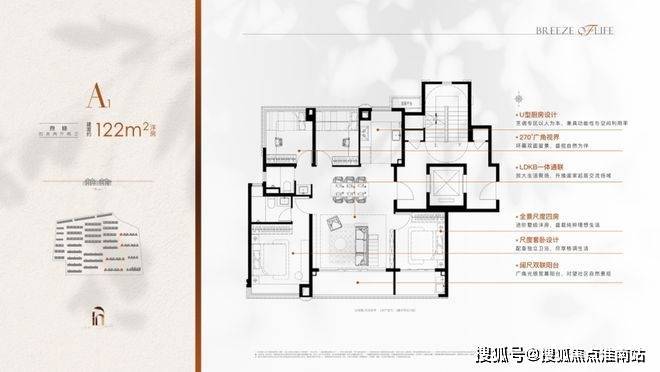 洋房特色:122㎡四房类一梯一户,8.2米双联阳台,全屋智能控制系统