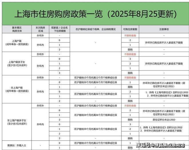 一、上海2025年8月最新限购政策汇总