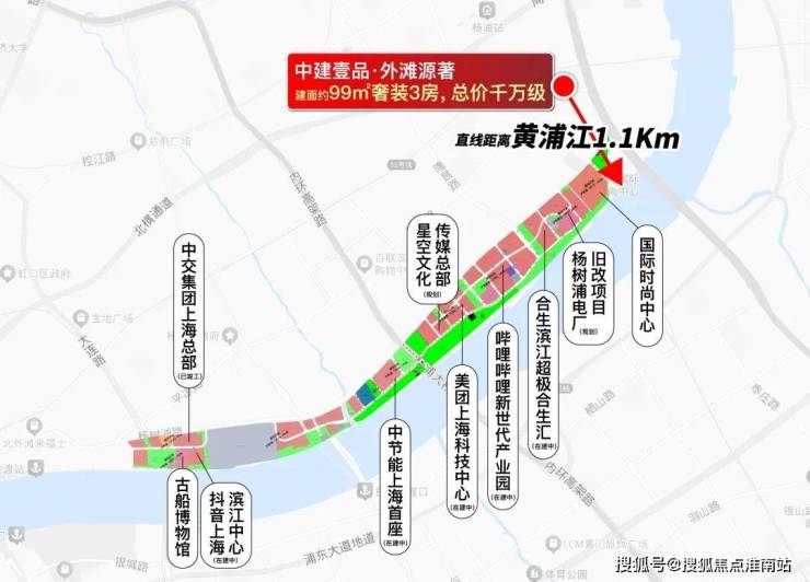 项目与黄浦江直线距离约1.1公里,项目与国际时尚中心直线距离不到1公里,与超极合生汇(在建)直线距离约1.2公里,可谓是近水楼台。