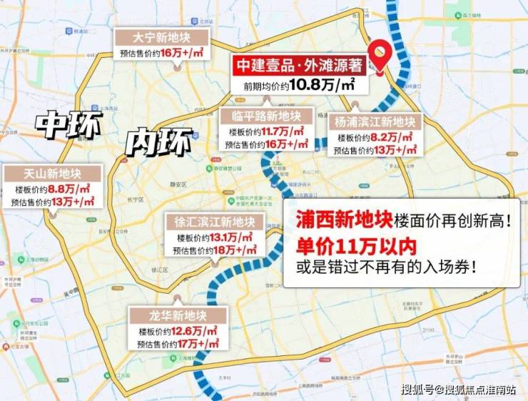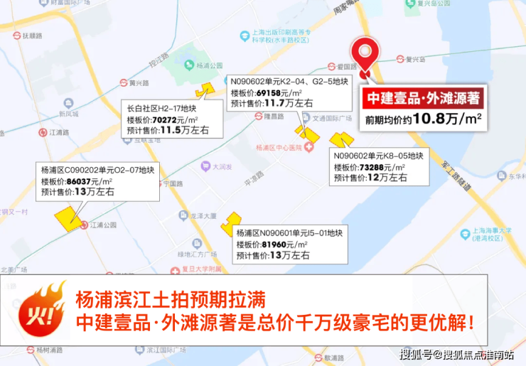 杨浦滨江核心地段项目价格有望突破13万+/㎡,即使离江比较远长白社区项目预计售价也在11.5万+/㎡。