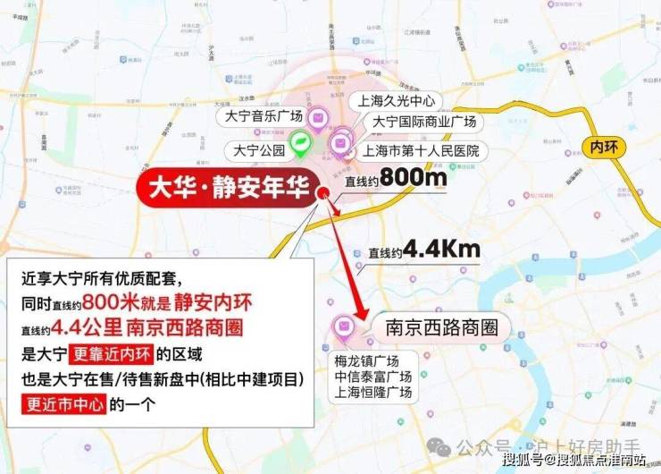 【大华·静安年华】项目可 谓双王炸区位,直线800米贴脸静安内环,一脚油门就能杀进上海城市动脉,畅达全市核心节点;约4.4公里直插静安寺-南京西路心脏,直接把全上海顶流的繁华,变成你家的「日常生活」。