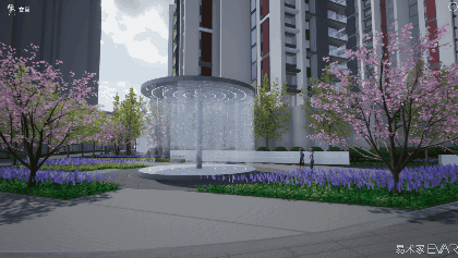 花境区域以柔美、浪漫为主要基调,以绿色和白色为主要色彩,间以清爽的蓝、紫花卉,形成清新浪漫的花境感受,同时结合雾森系统,制造浪漫气氛。