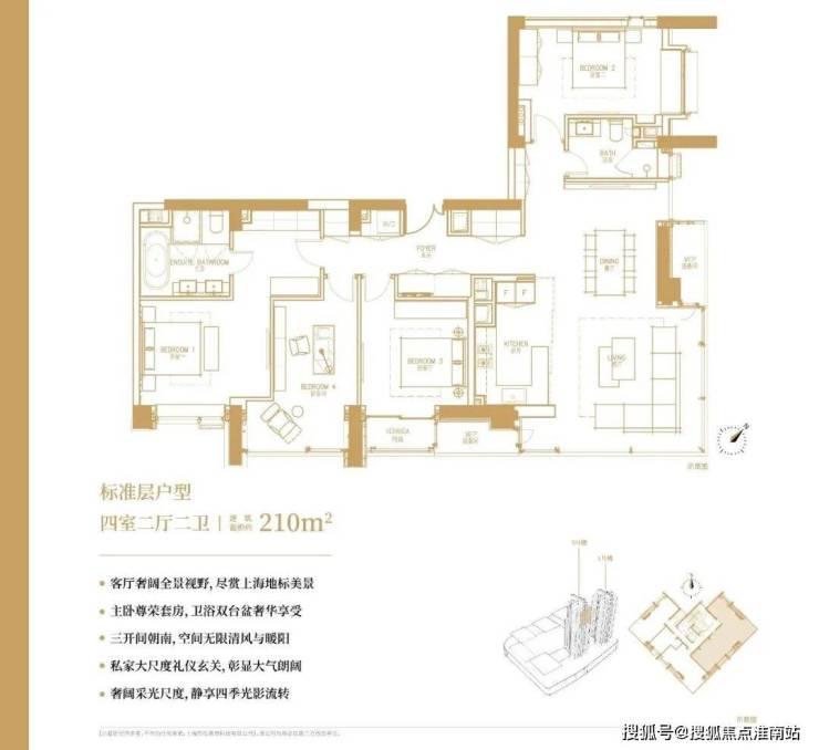 所以每个转角户型都拥有约270°的环幕视野,约10米的大尺度落地转角窗,让城市天际成为窗前永恒的风景线。