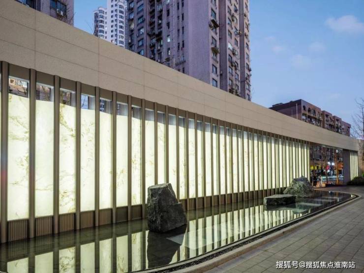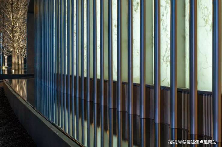 景墙材质突破性地选用前沿材料超薄石材,具有质轻、柔性、便于安装的施工特性,以及通透、自然的观赏特性,成为该项目中的一大亮点。