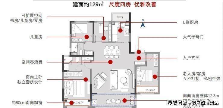 129㎡四室两厅两卫:南北通透,南向双卧飘窗,总价约260万起