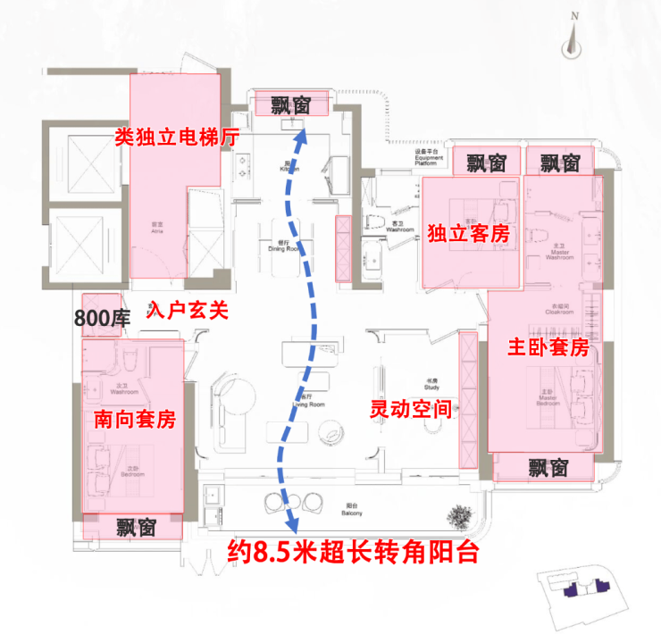 近全飘窗设计,扩展了生活的尺度感;主卧豪华套房设计,兼顾私密性与居住舒适度!