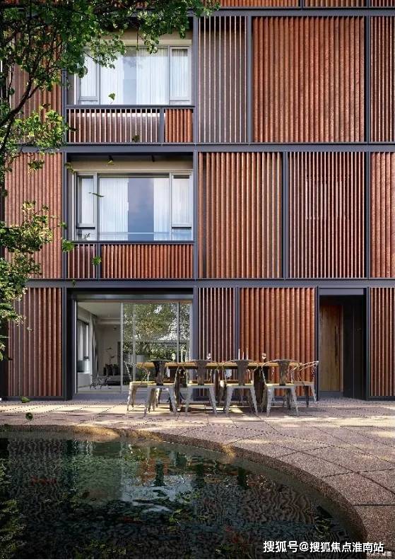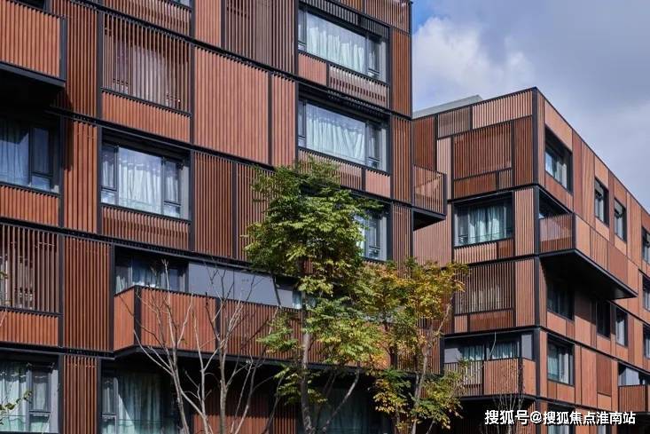 遵循去繁至简的设计理念,沁风雅苑建筑立面采用优雅木色调搭配竖条木纹,生动质朴的色调外形,呈现极简主义的建筑艺术。
