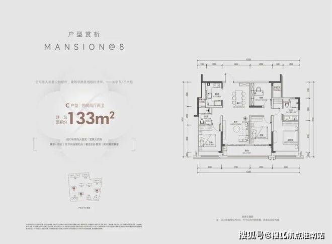 建面约135方边套户型,在空间设计上,升级户型灵动性和社交空间最大化,精心布局入户玄关,近40方的光幕大横厅、主卧星级套房、全景飘窗、约4.3米面宽的厨房等空间系统,完全是以豪宅的尺度奢享不同阶段的生活。