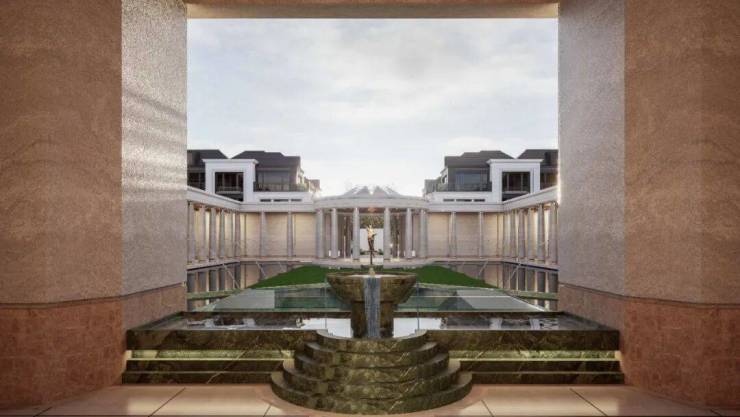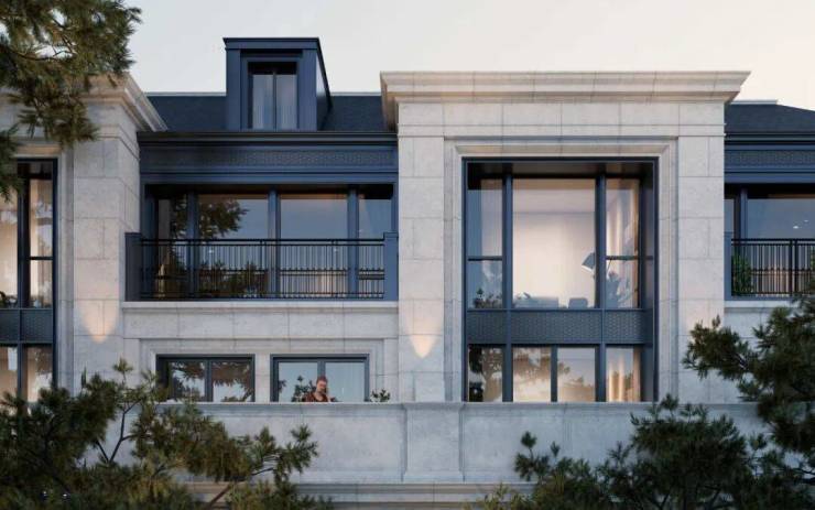 外立面采用天然石材+柱廊结构,切尔西式古典美学,历久弥新