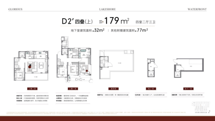 产品:容积率1.01低密社区,洋房+叠加+联排;洋房建面约123㎡3房,叠加/联排建面约150-220㎡