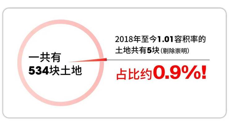 2018年至今上海只有12块约1.01容积率的土地出让。如果去掉遥远的崇明,那一共只有5块用地。