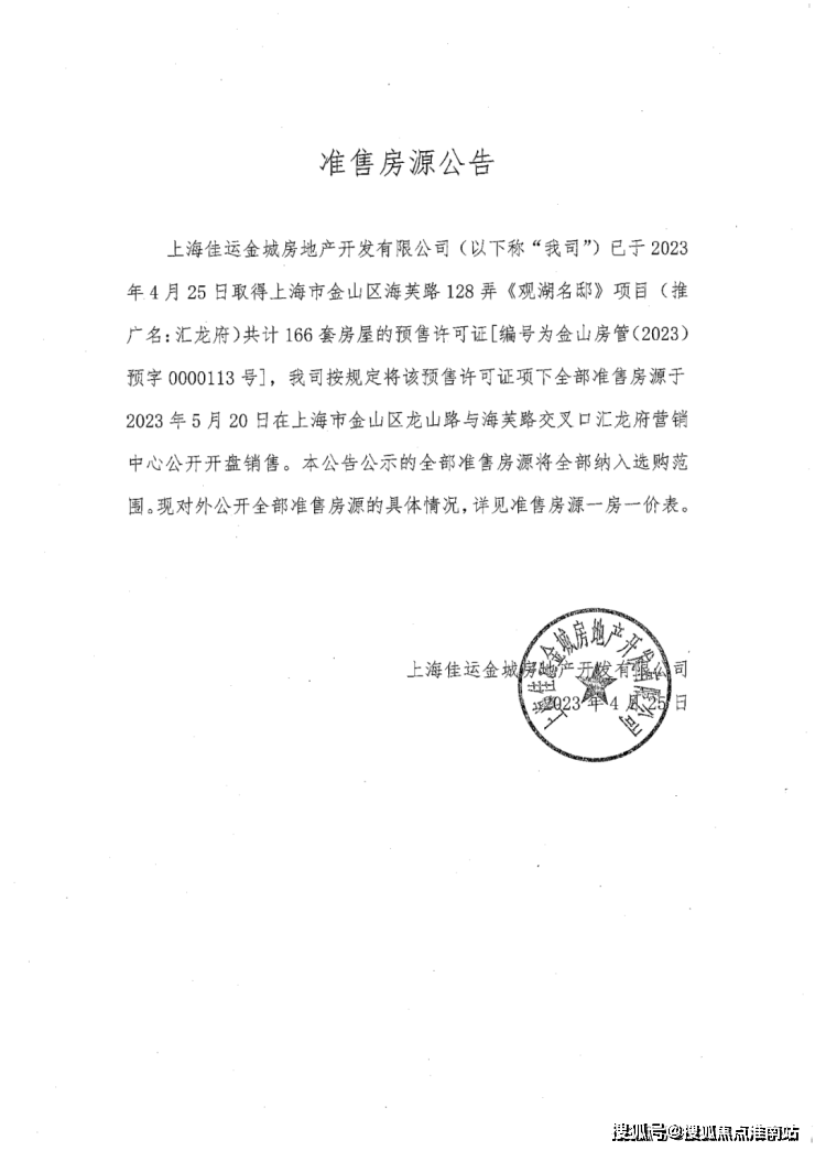 2022年6月7日,上海首批集中供地,佳运置业以总价约6.8亿元竞得金山区金山新城JSC1-0403单元2-20-01地块(即佳运汇龙府),无溢价,房地联动价32500元/㎡。项目四至范围:东至长堂河、南至龙山路、西至海芙路、北至龙翔路。