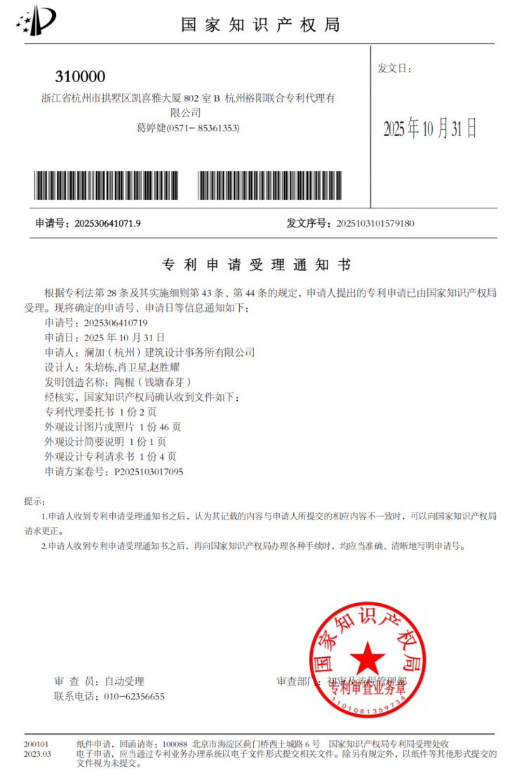 就连建筑立面,也是“钱塘春芽”的转译,蓝灰玻璃+米白铝板为主体,首次运用青绿陶棍,表面还有南宋瓷器的冰裂纹路,这项由LINE+朱培栋大师独创的设计,获得了国家建筑美学专利。
