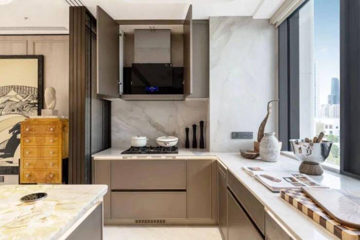 全国第一个住宅制氧系统;奥体第一个标配“四重净水”的住宅;奥体最高规格系统窗;奥体最高标准大金U+级空调+地暖......还配备嘉格纳厨电6件套;当代和劳芬的卫浴;方太最顶级的睿隐系列可升降抽油烟机,以及第一次在奥体出现的魔净系列智能水槽净食机......