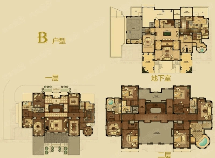 标配:室内电梯、地源热泵、中央空调、全屋智能安防、私家泳池、按摩池