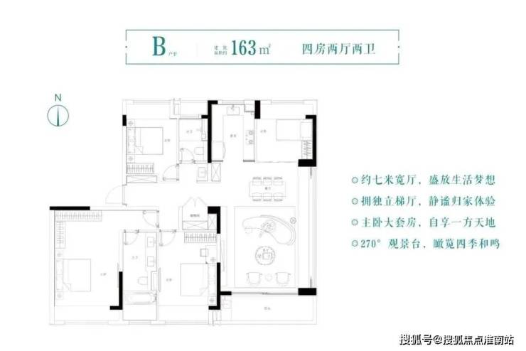 户型面积:建筑面积约143、163改善大四房