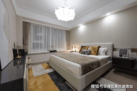 套房式主卧更是尊崇无比, 采用LED灯带吊顶,灯光点缀,倍感温馨。瞰景大飘窗设计,拨开窗帘就能沐浴阳光,尽揽室外美景; 尊享独立卫浴,夜深了看完世界杯比赛去沐浴洗漱,也不怕打扰到早已休憩的父母。