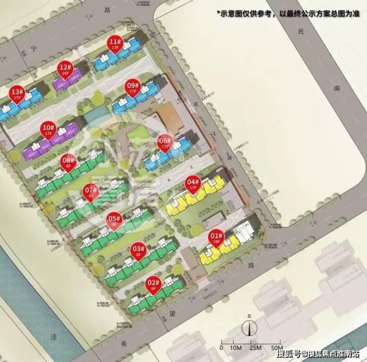 由8幢16-17F高层住宅、5幢6F多层住宅以及若干社区配套用房组成,共计规划673户(可售商品房624户、保障房48户、人才房1户);