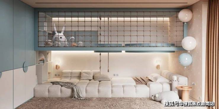 儿童区域则增添了更多的色彩,备显轻松、活力,浅蓝色让人如临海洋,黄色积极活泼有张力,而米色作为主颜色打底,遍布整体空间,来给予温馨、居家的氛围感。
