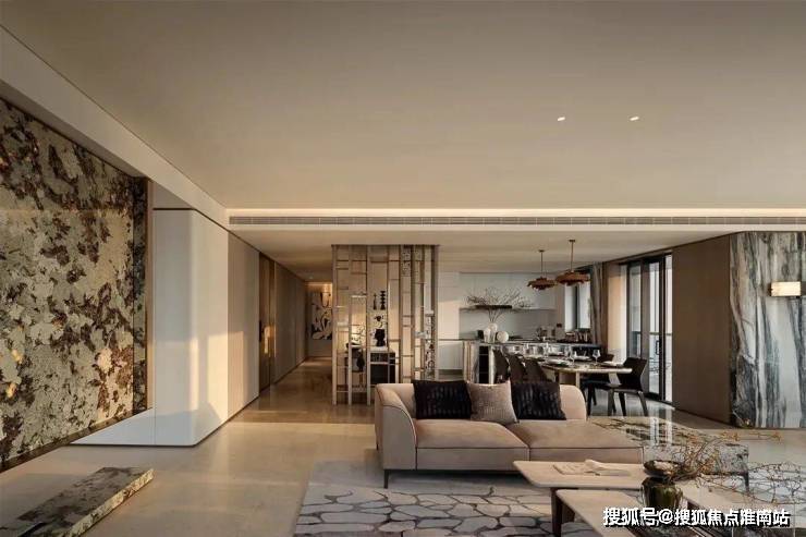 客厅双面背景墙:现在很多项目,连电视机背景墙都不做的情况下,翠栖府出人意料地做到“双背景墙”——电视机背景墙+沙发背景墙,开创“双背景墙”时代,其中电视机背景墙是大片岩板上墙,而沙发背景墙则是硬包的形式。提的一说的还有,主卧的背景墙,翠栖府这次也是“交付标准”。