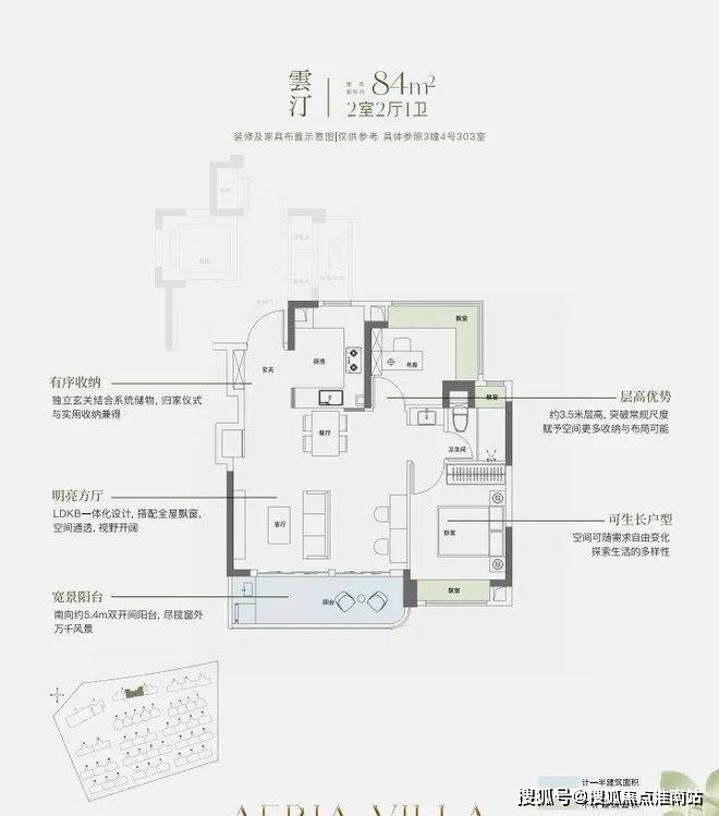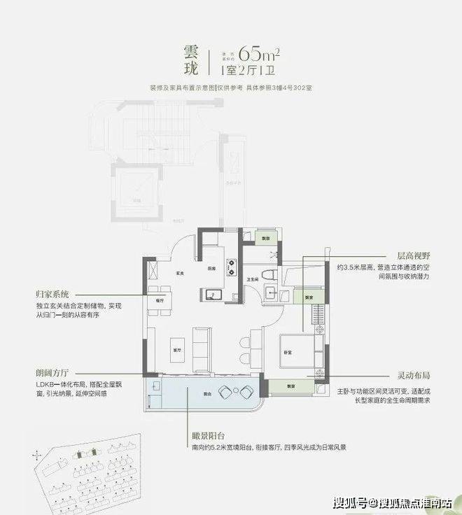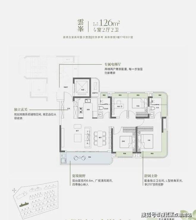 约9.8米南向面宽,配以超大尺度跑道式阳台,让室内外交融共生。