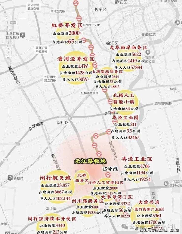 同时,还能依托15号线这条上海科创产业的超级动脉,一路贯穿虹桥开发区、闵行经开区、大零号湾等重要产业集群,直接把沿线14个产业园区70万+产业人口“一网打尽”!