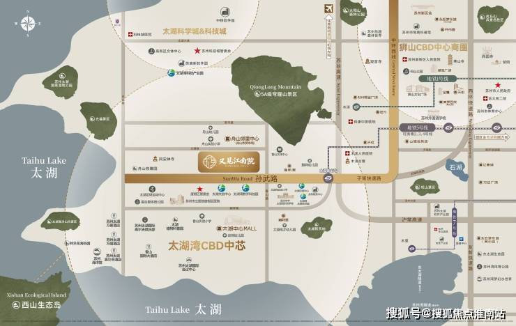 项目位于太湖湾"近湖临城"的黄金地带, 左手揽太湖的碧波生态,右手接狮山的繁华生活,正逐渐成为高端改善市场中难得的选择。从项目出发,购房者可以通过子胥快速路,快速抵达狮山核心区域,享受狮山广场、龙湖狮山天街等顶级商业配套。