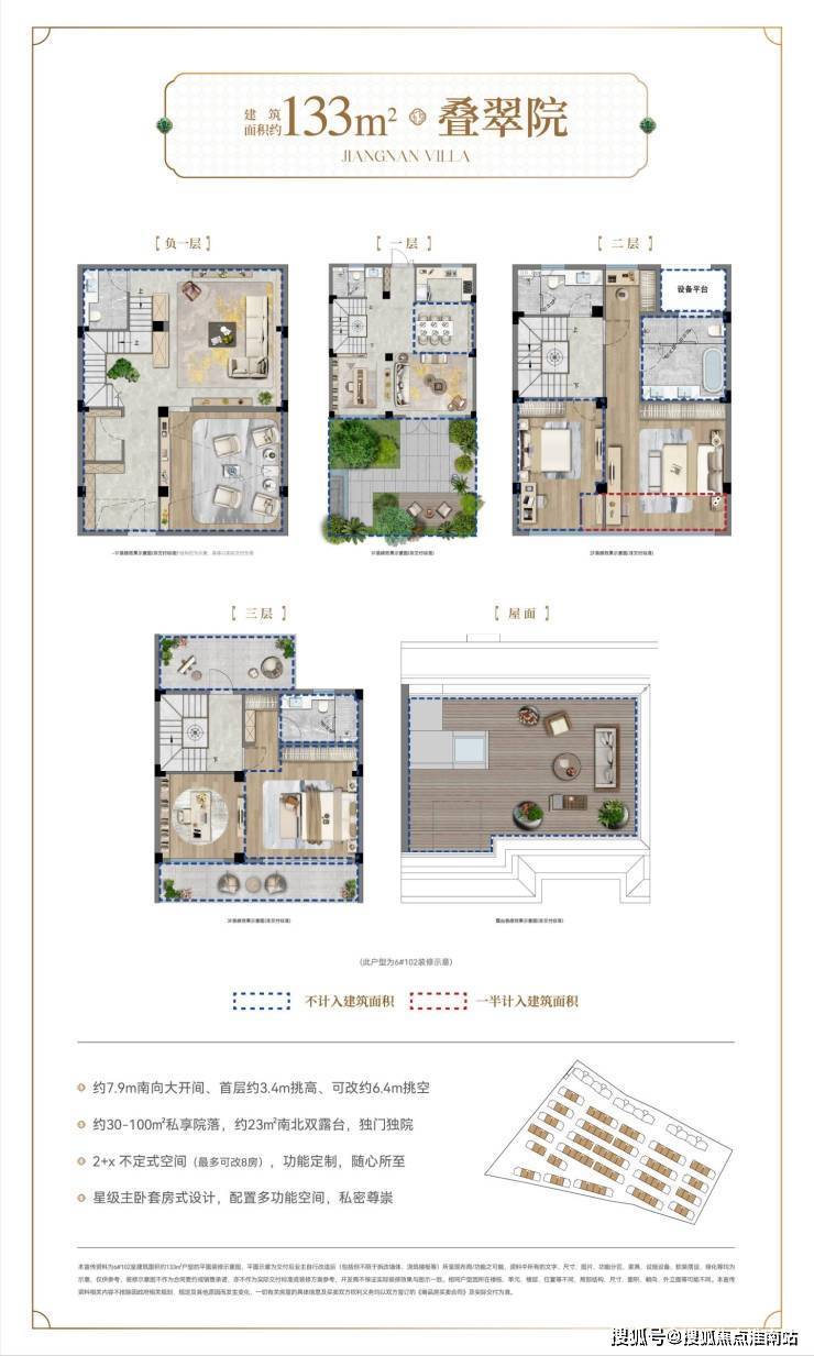 项目集苏州5座园林精髓,承香山帮匠艺,匠筑建面约123㎡科技洋房、建面约133-158㎡院墅臻品,是苏州市场上难得一见的低密墅区产品。