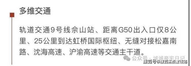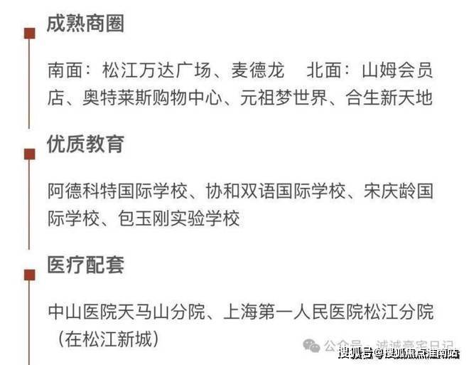 周边配套:项目周边配套设施丰富,包括高端酒店(如艾美酒店)、高尔夫球场(如佘山高尔夫球场)、温泉酒店(如月湖温泉酒店)、公园(如月湖雕塑公园、佘山国家森林公园)以及商业设施(如松江万达广场).交通方面,临近G50、G318等主要干道,地铁9号线佘山站距离约3.5公里.