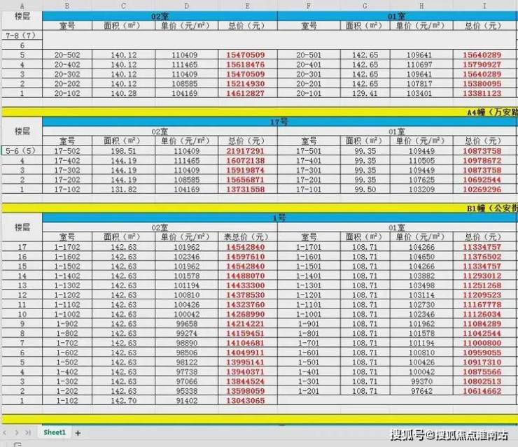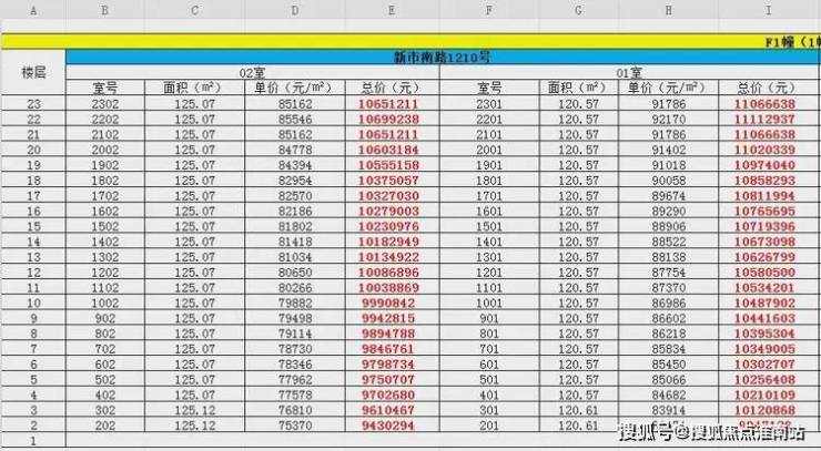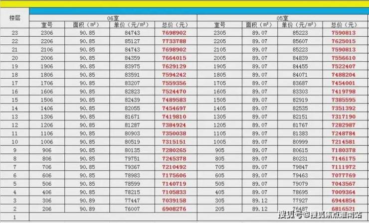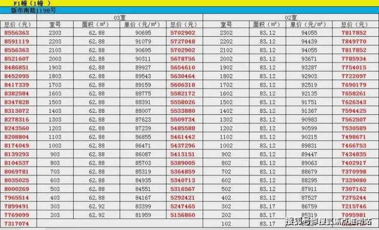 最新一房一价表: