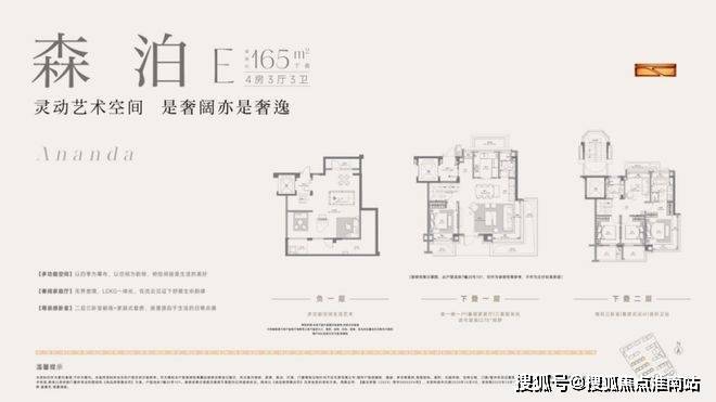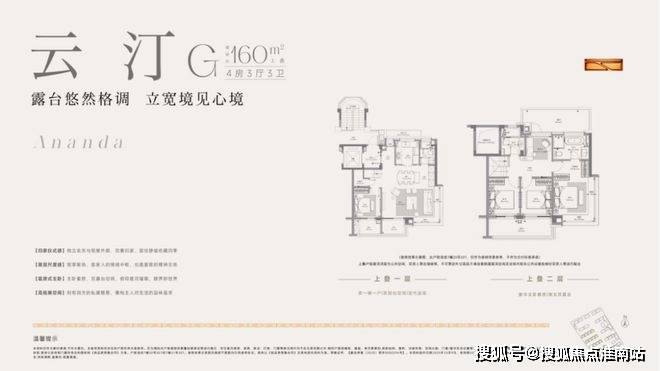建面约160㎡上叠预计使用率最高约145%、约8.5m横厅双阳台双露台、南北通透主卧套房、阳光半坡顶楼。(注:非得房率,最终房屋得房率以实测报告为准)·建面约165㎡中叠 | 扩尺面宽的适逸人生·建面约165㎡下叠 | 通透采光的垂直空间革命