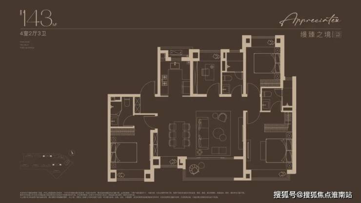 143平4房3卫,层高拓展到3.15米,南向双套房设计,基本上宣布嘉定老城封顶了。