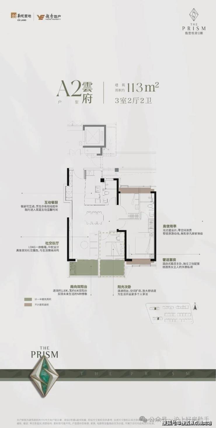 朝南双阳台+一梯两户+高得房率