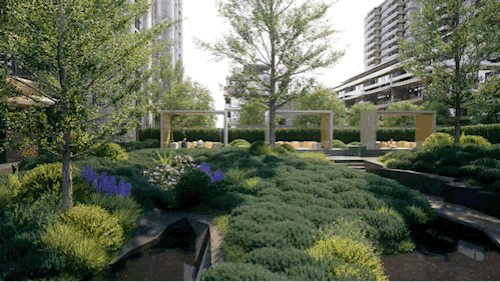 园林上还会有一条仿照新杨思规划而打造的中央公园的配置。
