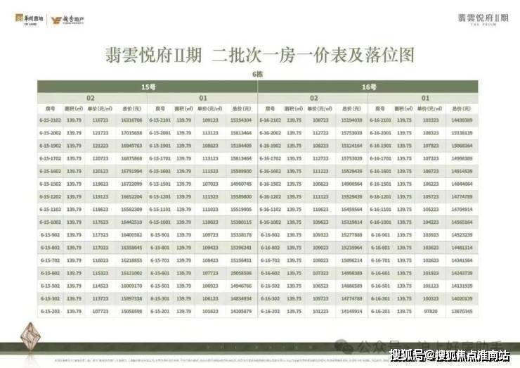 翡云悦府一房一价表
