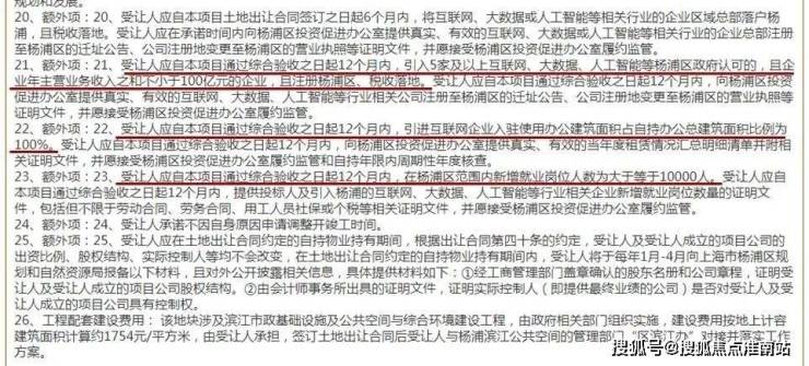 ①在项目建成验收之日起6个月内,引入文化娱乐、文旅消费、数字经济等相关行业的跨国企业总部,落户杨浦,且税收落地,在土地出让年限内不变更注册地;