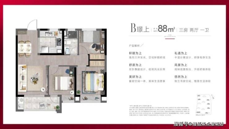 建面约88-98㎡3房