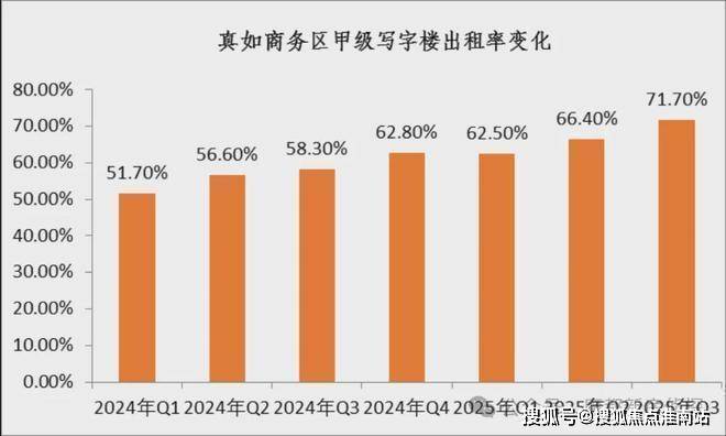 真如的产业规模十分扎实。公开数据显示,2024年,中海中心跃居上海写字楼年度租赁市场成交榜首。真如商务区甲级写字楼出租率也一路攀升——从2024年一季度的51.7%,提升至2025年三季度的71.7%。
