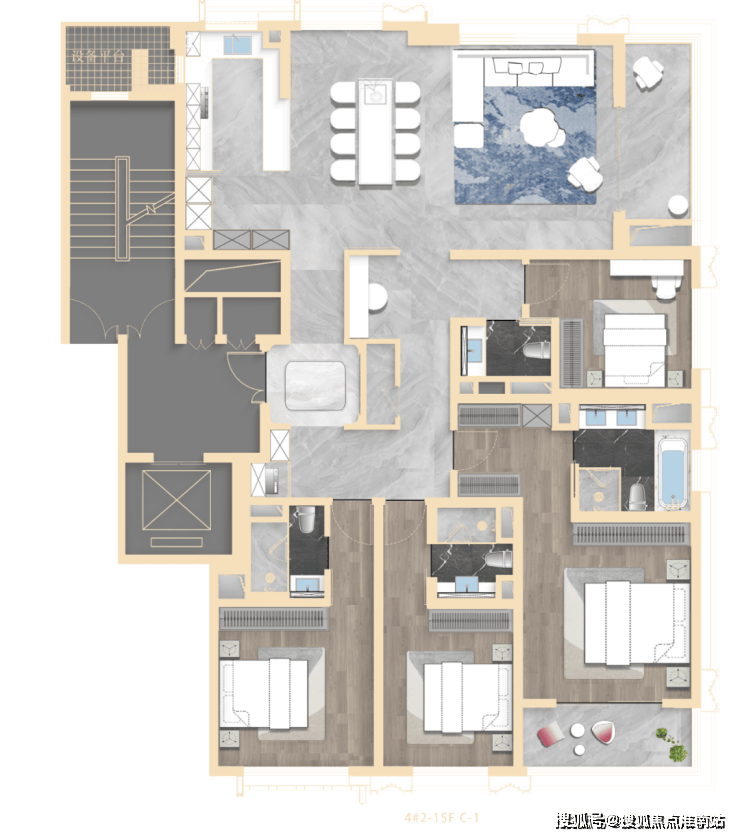 4#楼王总高16层,均为大户型产品,圈层更纯净!主力建面约193-302㎡,户型图如下: