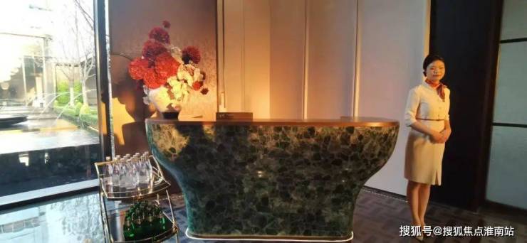 进入人行入口,设置了接待厅,接待台都采用了 绿奢石。