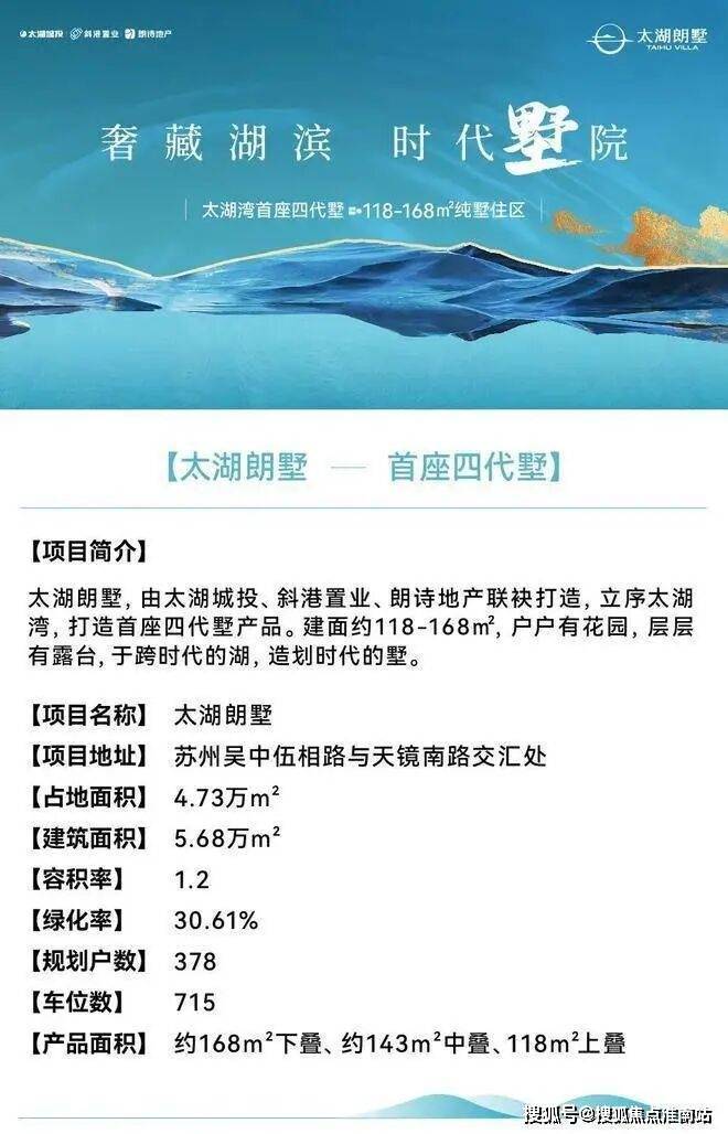开发商:由太湖城投、斜港置业及朗诗地产联合开发,定位为太湖湾首座四代墅产品。