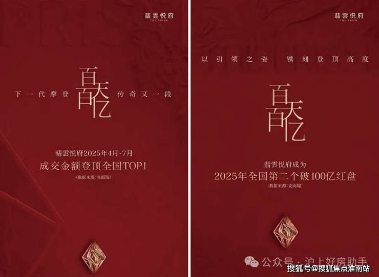 根据克而瑞数据,翡雲悦府已成为2025年全国第二个销量突破100亿的项目。