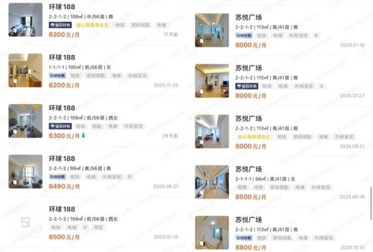 目前湖西比较具有代表性的同类产品有苏州中心、东方之门等,百平左右的户型月租金6k+。