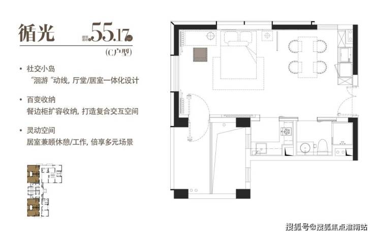 建面约55.17 m²|一室一厅一厨一卫