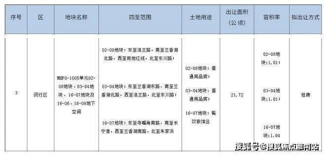 16-07地块:东至寺嘴角南路,南至长宁港,西至兰香湖南路,北至朱家浜;,土地用途餐饮旅馆业 ,容积率1.04。