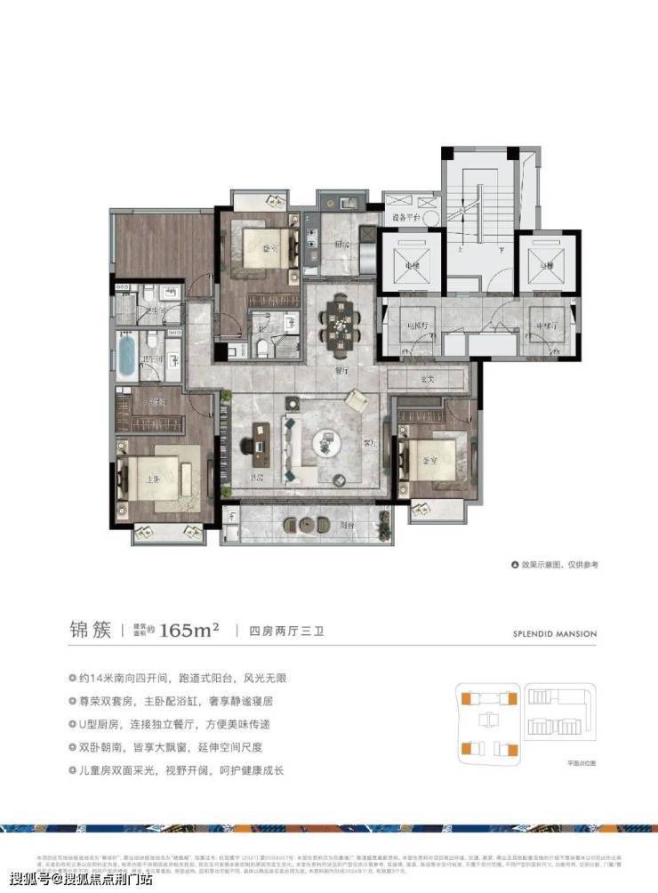 建面约165㎡:4室2厅1厨3卫