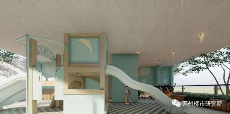 内部园林水系+童玩区:架空层设儿童活动空间,提升家庭居住体验